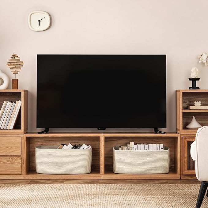 - MULTI-ROOM VERSATILITY & PRACTICAL USE - Transform clutter into order! Ideal as a kids toy storage organizer in nurseries, a blanket basket in livingrooms, or a rectangle basket for pantry items. Use in bedrooms, laundry rooms, closets – anywhere bulky storage is needed.