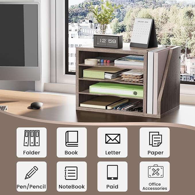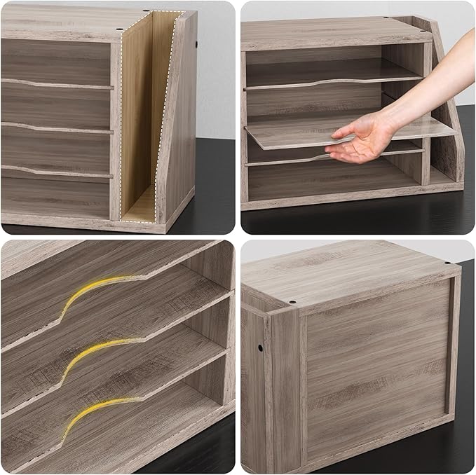 - 【Multiple-Scene Application】:Desktop paper organizer wood measures 15.83"L x 9.25"W x 11.1"H. Whether it is placed in the office, classroom or library, it will be a good helper for you to organize efficiently.