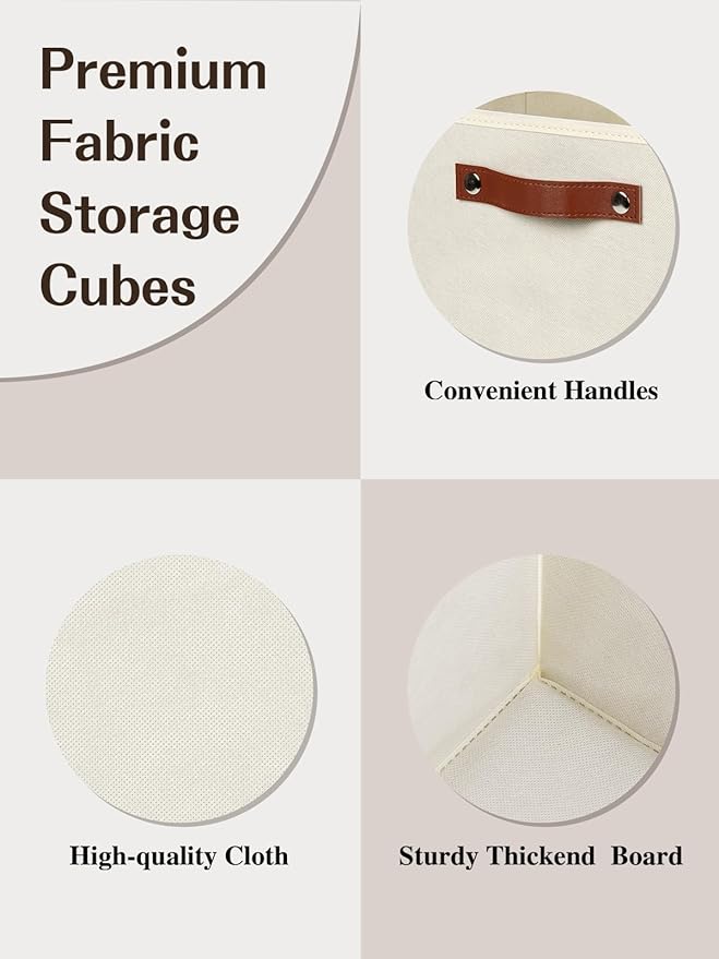 Temary 11x11 Storage Cubes Fabric Cube Storage Bins with Handles Clothes Storage Boxes Baskets for Organizing Home, Shelf, Closet (Beige, 11 x 11 x 11)