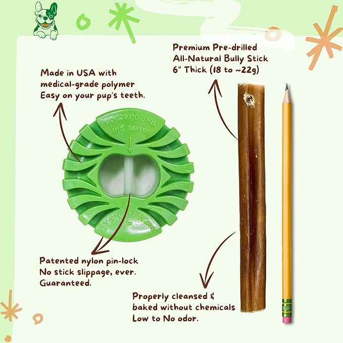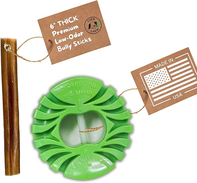 EverChew | Made in USA Bully Stick Holders & Premium All-Natural Bully Stick Starter Packs (SafetyChew+ & 1 Thick 6" Stick | 16 to 39+ lbs)