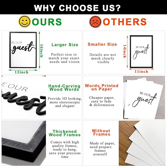 - 【A Wonderful Gift】Elegant and timeless design ensures the be our guest wall art can match with most home styles. A thoughtful present for various events such as birthdays, anniversaries, housewarmings, and weddings. Guest bedroom wall decor adds a personal touch to first homes, new homes, and other cherished moments.