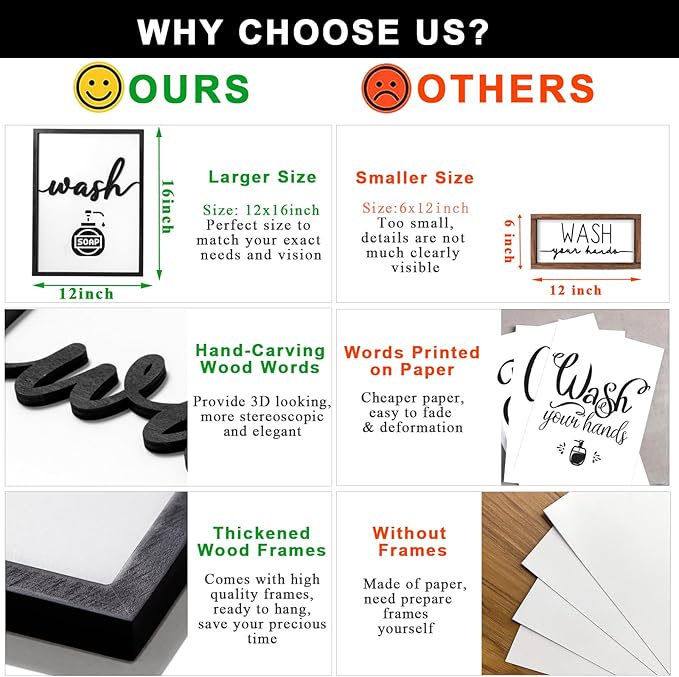 - 【Premium Quality】These bathroom pictures wall decor are made of high quality solid wood, characterized with durability and good wooden texture, not easy to deform or break, also touch smoothly due to fine workmanship. No odor, can be used for a long time.
