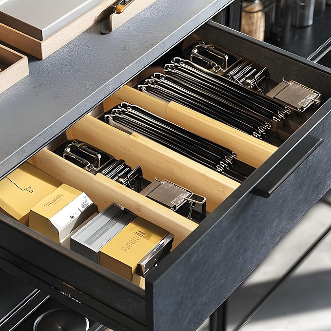 - High-quality Bamboo: Crafted from premium bamboo, these dividers are sturdier than plastic alternatives; The natural material matches drawer interiors, resists wear, and the built - in spring guarantees a firm grip—long - lasting organization for home/office
