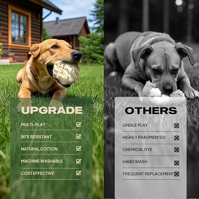 - 【Most Safe Rope Toys for Dogs】Our dog rope toy is made of 100% natural washable cotton, it’s safe for your pet to chew and play daily. And the durable dog toys are featuring wear-resistant, tightly woven twist and sturdy knots make large dog toys withstand for aggressive chewing