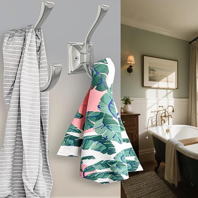 2 Pack Brushed Nickel Towel Robe Hooks, Coat Hooks for Wall Hanging Hat, Key, Bag, Mudroom Hook Entrance Bathroom Door Decorative Heavy Duty Hats Hanger