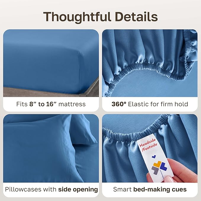 - Easy Care & Durable: Machine wash and tumble dry our sheets at regular settings for long-lasting use. Our durable parisian blue sheets won't pill, fade, or shrink, ensuring years of great-looking bedding. Remove promptly from the dryer for a wrinkle-less look.