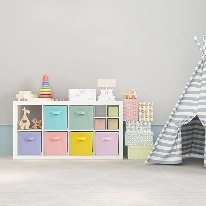 Fabric Storage Bins 12 Pack 13 inch Foldable Storage Cubes with Handles Fun Colored Durable Cube Storage Bin for Home, Playroom, Closet Organizers and Storage Green, Cyan, Purple, Yellow, Pink, Peach