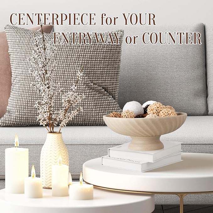 Large Resin Pedestal Decorative Bowl - Modern Fruit Bowl for Kitchen Counter - Handicraft Bowls for Home Decor - Key Bowl for Entry Table,Artificial Stone Beige