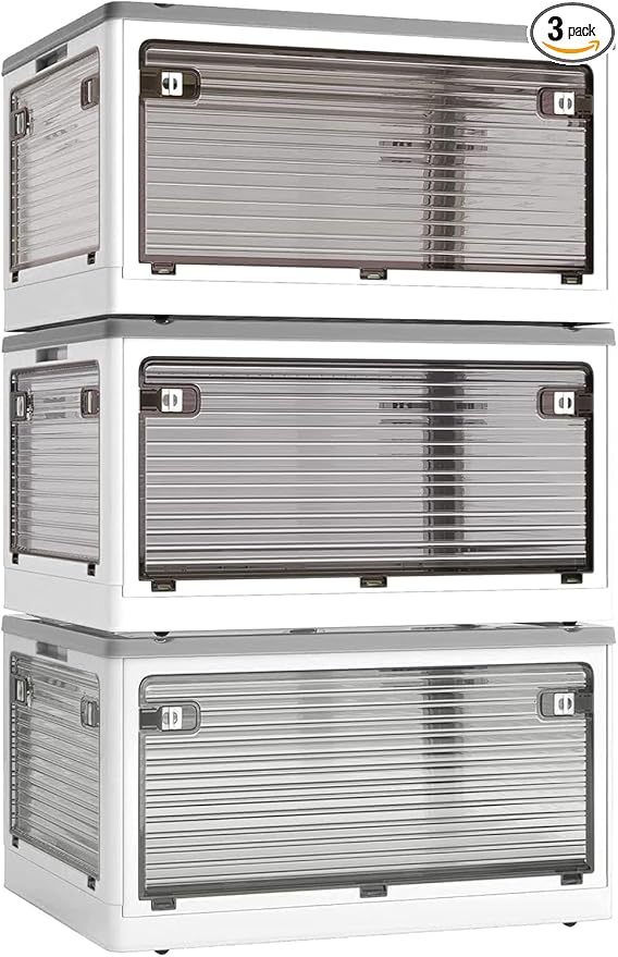- 【Innotive 5-Door Access Design】Experience ultimate convenience with stackable storage bins with doors featuring dual pull-ring mechanism. The all-ways opening stackable storage bins allow 360° item retrieval without full unpacking. Transparent plastic cabinet walls provide instant content visibility, while reinforced door tracks ensure smooth sliding. Ideal as stackable closet storage bins or portable cabinet for craft supplies. Heavy-duty PP material withstands 82lbs capacity per bin