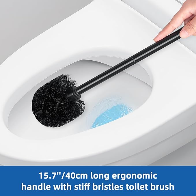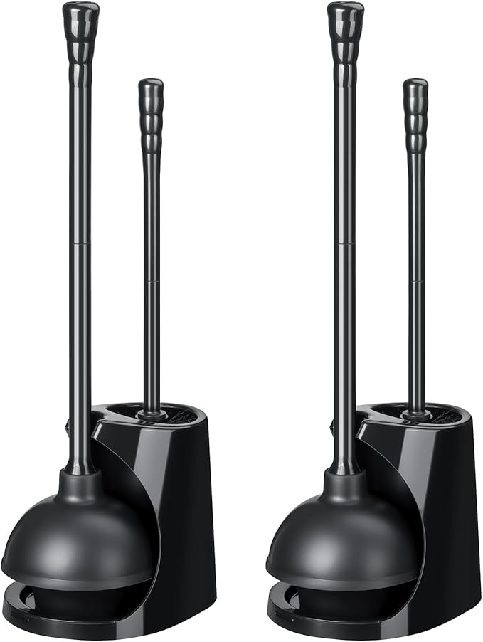 - 【Extended Handles for Comfort】Toilet brush measures 15.7" and plunger 21.6", providing extra reach to keep hands away from splashes and ensure comfortable use.
