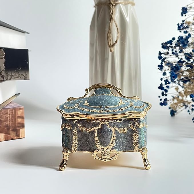 Truewon Princess Jewelry Box, Modern Korean Asian Design Metal Chest Earring Ring Necklaces Storage for Girls (Golden Blue-violet, Small)