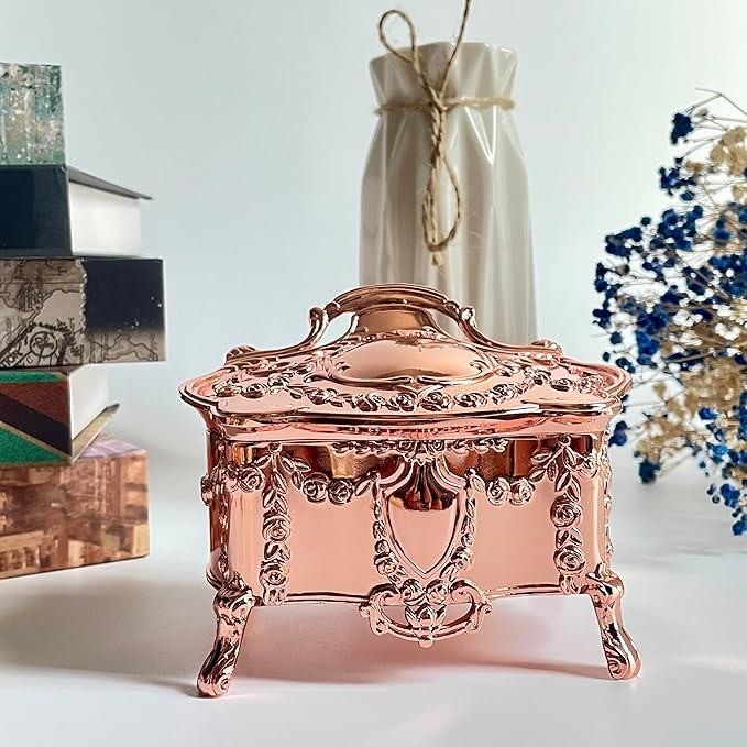 Truewon Princess Jewelry Box, Modern Korean Asian Design Metal Chest Earring Ring Necklaces Storage for Girls (Rose Gold, Medium)