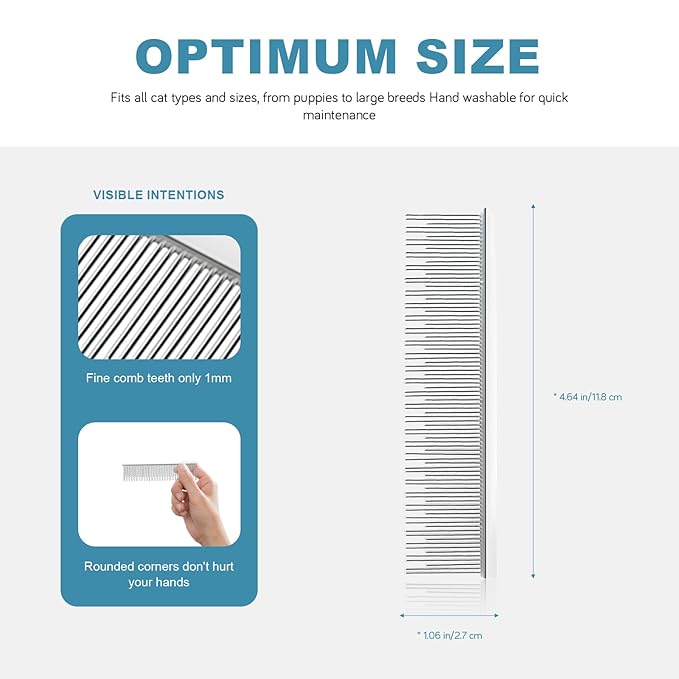 - DURABLE & COMFORTABLE DESIGN – Lightweight yet sturdy 6-inch comb fits comfortably in hand. Polished rounded tips ensure a pleasant grooming experience for both pets and owners, reducing grooming stress.