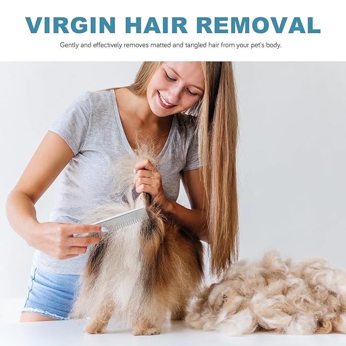 - GENTLE DETANGLING & MAT REMOVAL – Rounded stainless steel teeth glide smoothly through mats and tangles without pulling fur, ideal for long-haired breeds like Persians and Maine Coons. Safe for sensitive skin and daily grooming use.