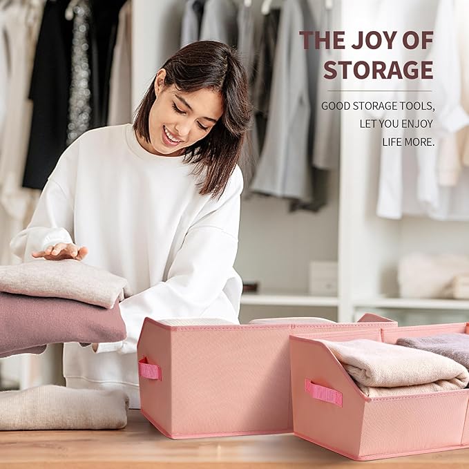 Closet Baskets for Shelves Trapezoid - Decorative Storage Baskets with Handle, Closet Bins for Organization, Shelf Storage Bins for Clothes, Books, Home, Office, 3 Pack, Pink