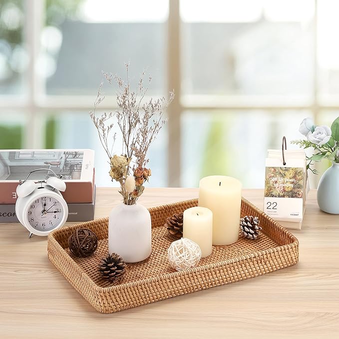 - Ideal for Home Decor: Each tray is hand-woven and has uniqueness and artistic value, perfect for a part of decoration on coffee table, dresser or bar. Get this season's elegant look with this classic tray for storing all your decor items in your home matches many decor styles, add a natural touch to any room