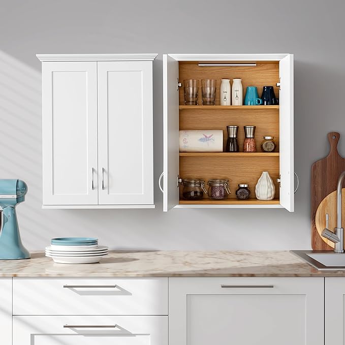 - 【Versatile Wall Cabinet】This wall cabinet includes two adjustable shelves, allowing you to customize the spacing for storing items of various sizes. It makes efficient use of empty wall space above vanities or tables, making it an ideal choice for bathrooms, kitchens, living rooms, or dining areas.