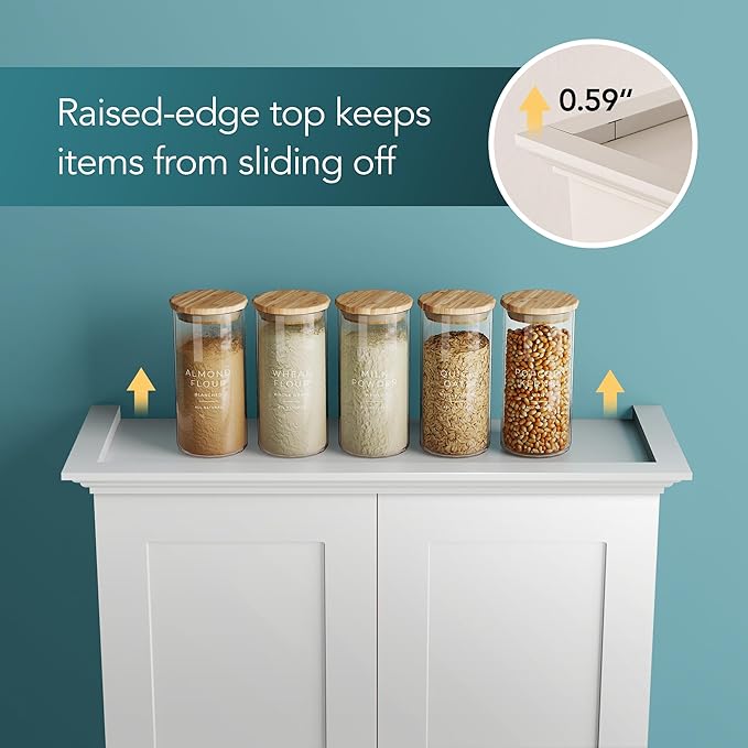 - 【Unique Top Design】The top features a recessed groove design that adds storage space and prevents items from falling off. The multi-layered lines and contours on the cabinet top enhance its stylish and premium look, breaking away from conventional aesthetics.