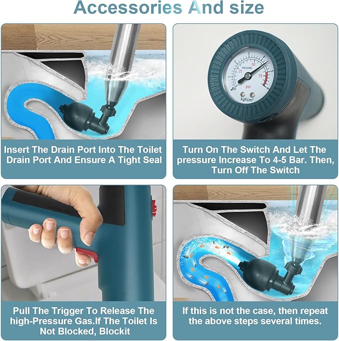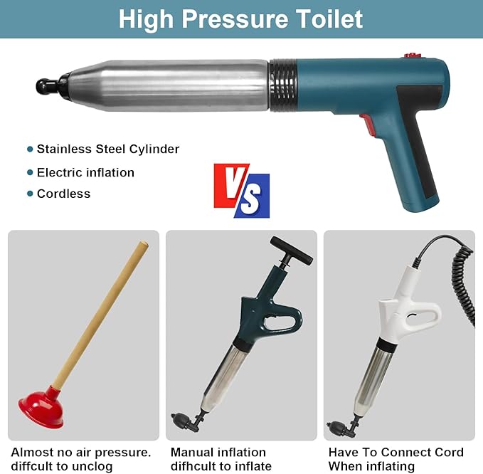 - 【High-Powered Clog Elimination】Say goodbye to ineffective manual plungers with the Electric Toilet Plunger! This heavy-duty tool delivers rapid, high-pressure suction to clear stubborn toilet, sink, shower, and drain clogs caused by hair, grease, and debris.