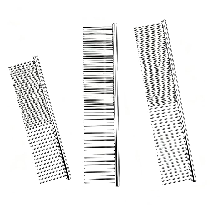 Metal Comb for Dogs - Stainless Steel Dog Grooming Comb Set, 3 Pack Pets Flea Remova Tool - 6.3IN/7.4IN