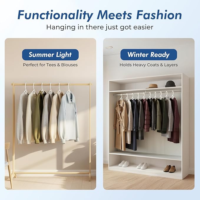 - 3-in-1 Built-In Organizer - Tame closet clutter in seconds! Hang tops, drape pants on the bar, and store accessories on the hook. This all-in-one design keeps your outfits and accessories together, saving space and streamlining your morning routine