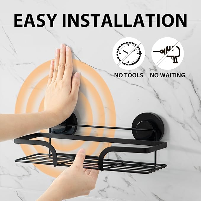 - Easy Installation & Remove: No drilling, no glue, no tools, and no waiting required to use the shower rack. Simply choose a smooth and dry surface without any grout, take off the protective cover and push the board "PUSH" STRONGLY until you hear "PUFF", ONE second to complete the installation. The suction cup is removable without leaving any marks, so you can adjust installation position whenever you want