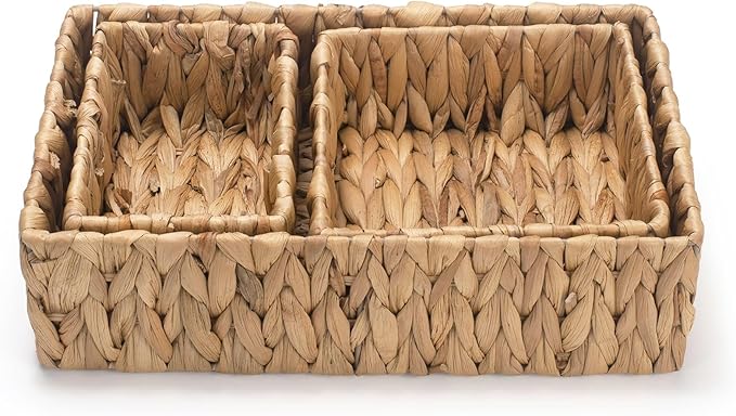 3 Pack Wicker Storage Basket, Natural Woven Water Hyacinth Storage Basket for Shelf Organizing