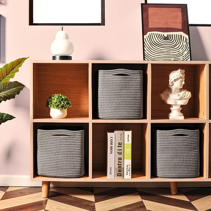- Natural Cotton Rope Baskets for Storage: Our storage bins for clothes are all made of natural cotton. These storage baskets for shelves are soft, durable, foldable and safe for children and pets. Using our woven baskets for storage to organise and store your home will give you peace of mind