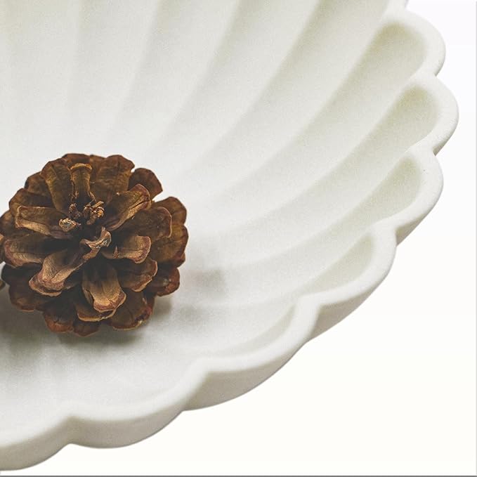 - Fruit Bowl for Kitchen Counter: The decorative bowl has an elegant scallop style, with soft undulating curves that resemble the patterns of waves crashing over it. It can be used as a multifunctional decorative tray or an home décor accent.