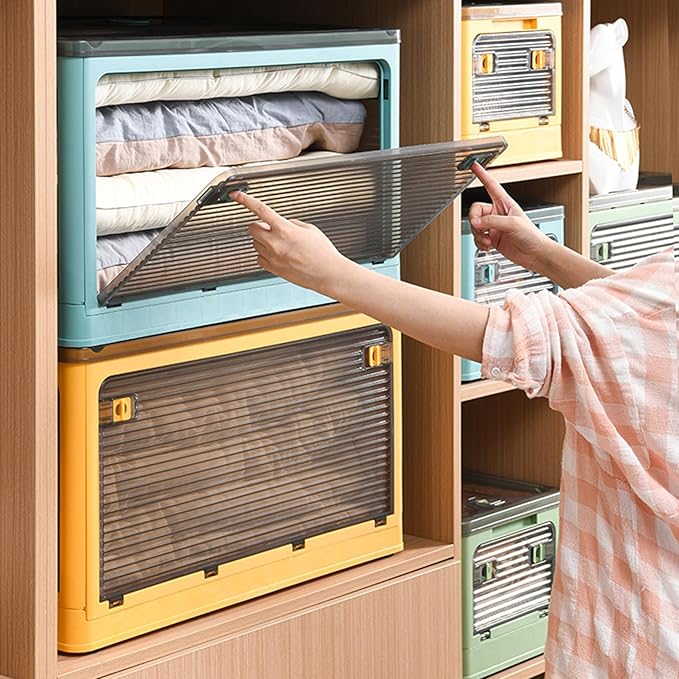 - 【Innotive 5-Door Access Design】Experience ultimate convenience with stackable storage bins with doors featuring dual pull-ring mechanism. The all-ways opening stackable storage bins allow 360° item retrieval without full unpacking. Transparent plastic cabinet walls provide instant content visibility, while reinforced door tracks ensure smooth sliding. Ideal as stackable closet storage bins or portable cabinet for craft supplies. Heavy-duty PP material withstands 82lbs capacity per bin