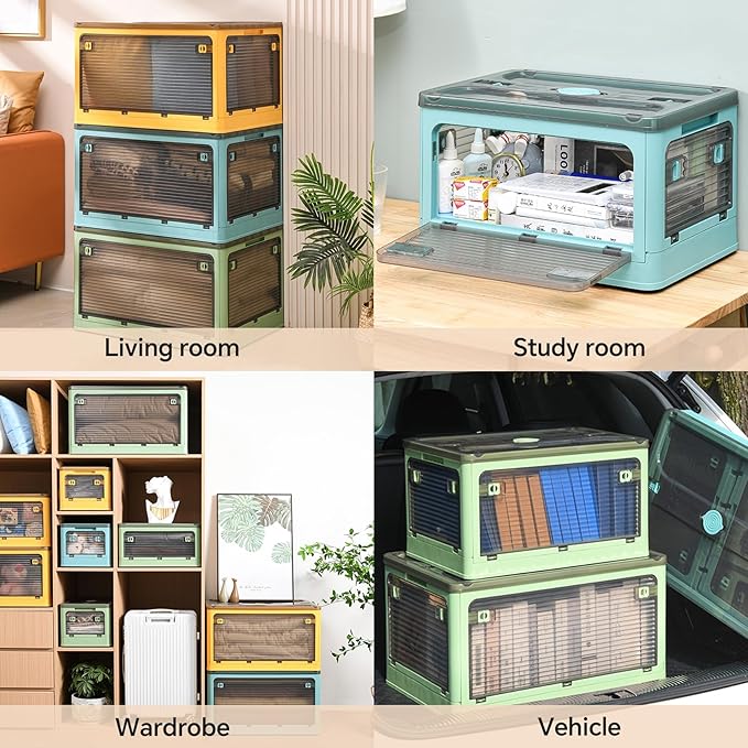 - 【Space-Saving Stackable & Foldable System】Maximize vertical storage with these stackable plastic storage bins featuring anti-slip grooves. The collapsible stackable storage bins fold flat when empty, reducing to 1/4 size for car trunk storage. Interlocking design creates stable stackable storage cabinet structures up to 2.8ft tall. Works as foldable storage bins with lids for seasonal decorations or heavy duty stackable storage bins for tool organization