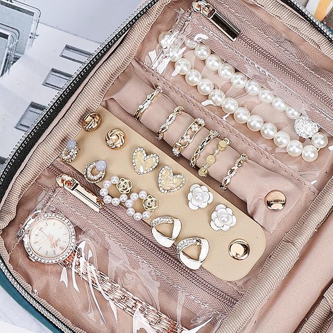 - SEE ALL THE JEWELS AT A GLANCE-Multiple transparent pvc pockets allow you to find the jewelry you want to wear today at a glance