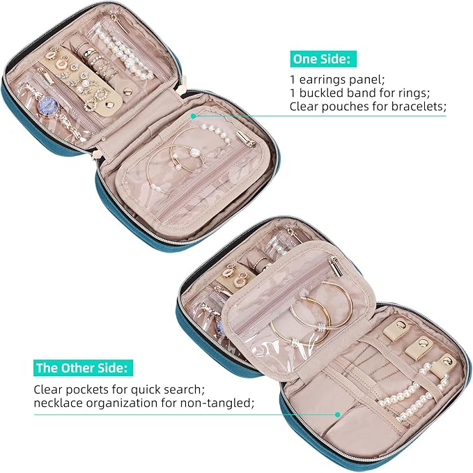 - WELL-ORGANIZED -With designated areas for earrings, rings, necklaces and bracelets .This jewelry case will keep you organized on the go and keep all your precious jewels in order
