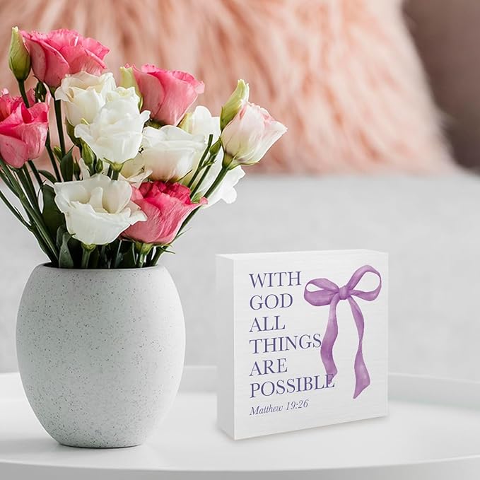 Purple Bow Room Bedroom Bathroom,Purple Decor,Inspirational Bible Verses Decorations Butterfly Decorations for Teen Girls Gifts Wooden Box 5 x 5 Inch