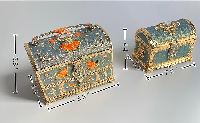 - The raw material is zinc alloy, heavy enough.Please keep the box/chest away from children, especially the L and XL models.Please do not leave the key in the jewelry box.
