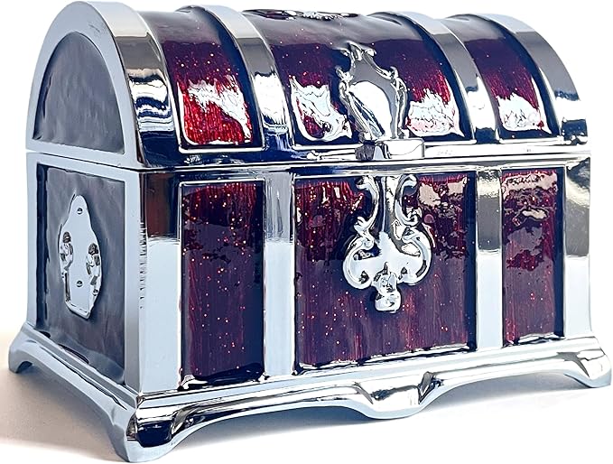 Retro Jewelry Box Arched Vintage Rectangular Metal Chest Necklace Ring Earrings Storage Case for Women Girls (Chrome Transparent Red, M)