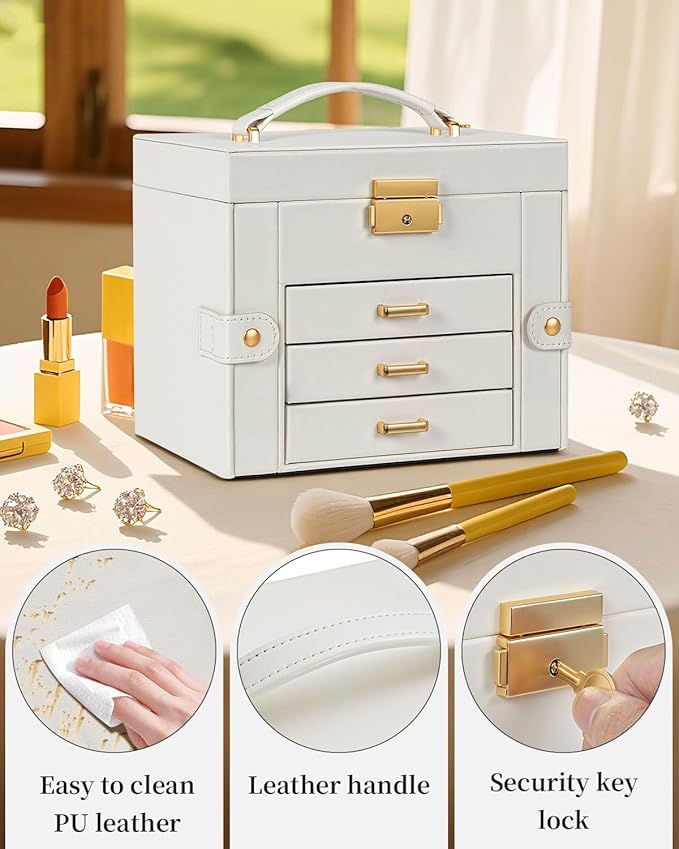 - with Inner Mirror and Lock: There is a mirror on the top layer of the jewelry box for women, which allows you to do makeup and check makeup at the same time, especially when you go out to work or on an appointment in the morning, saving your precious time