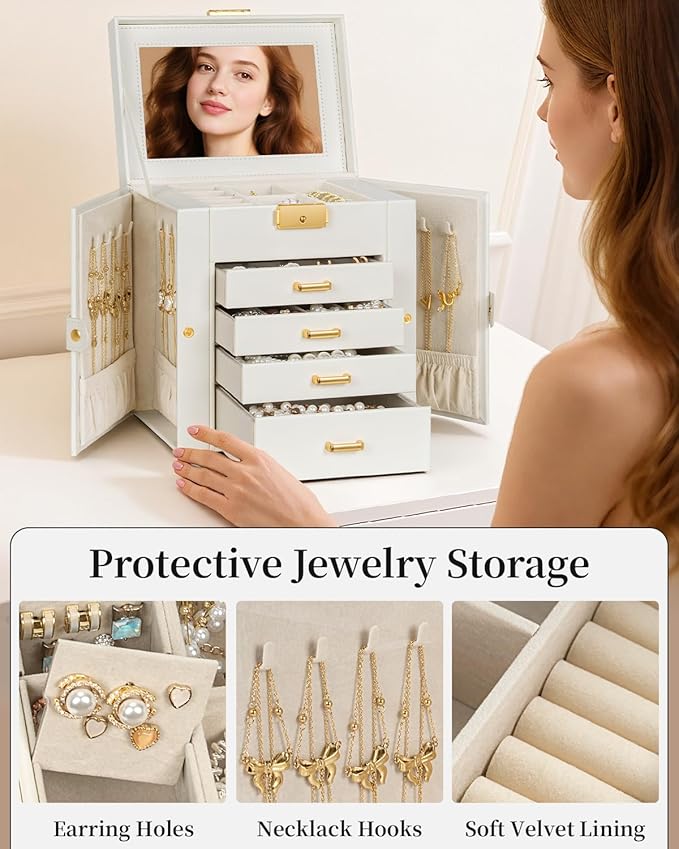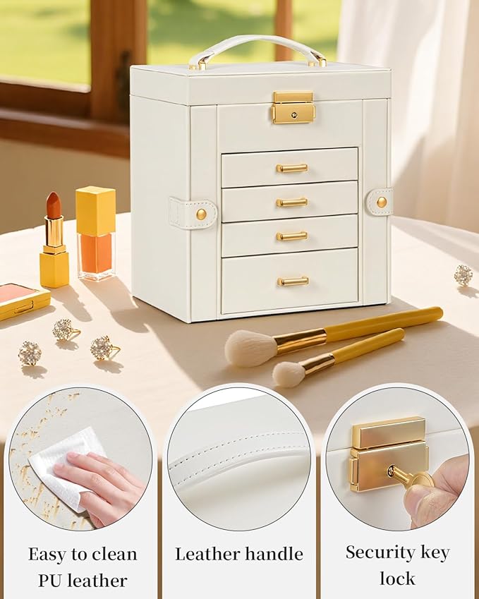- with Inner Mirror and Lock: There is a mirror on the top layer of the jewelry box for women, which allows you to do makeup and check makeup at the same time, especially when you go out to work or on an appointment in the morning, saving your precious time