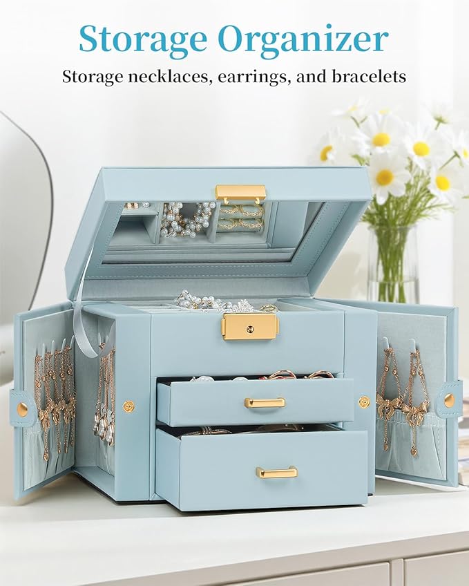 - with Inner Mirror and Lock: There is a mirror on the top layer of the jewelry box for women, which allows you to do makeup and check makeup at the same time, especially when you go out to work or on an appointment in the morning, saving your precious time
