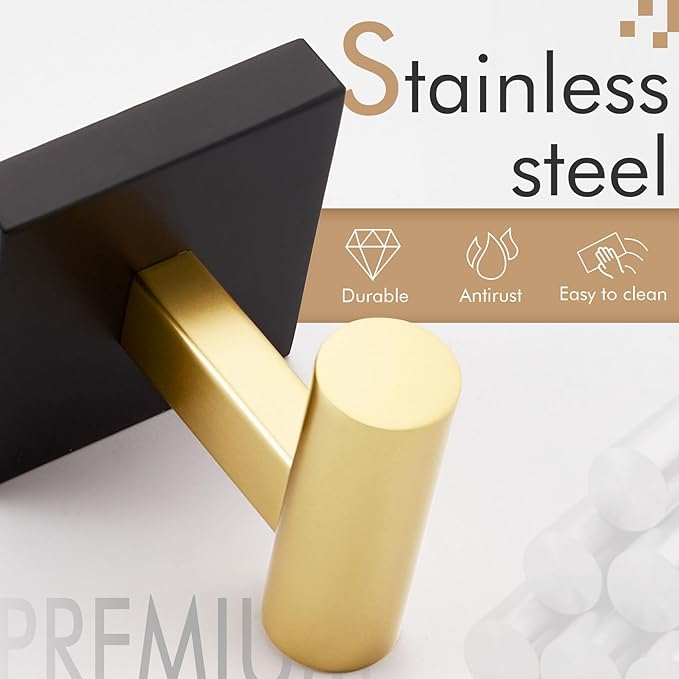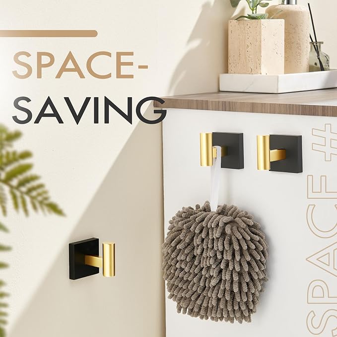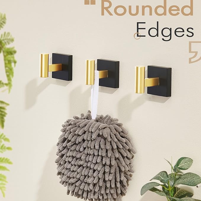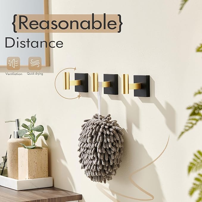 - ◄ Combinational Design ► The Black with Gold coat hooks combine the elegant square, the sleek round and the unique rectangle in the design. It will bring the modern look to your bathroom/ kitchen/ office/ balcony/ toilet/ washroom