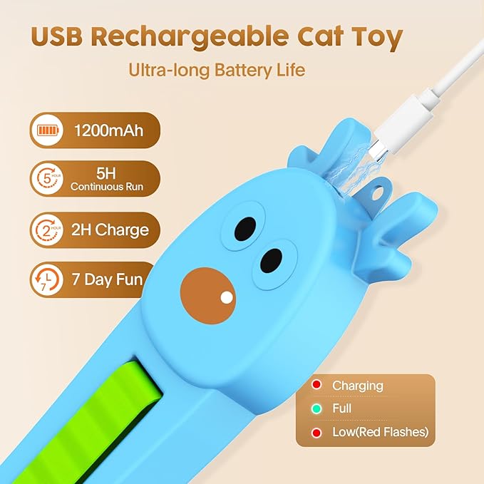 - Rechargeable & Safe for Daily Use: Built with auto-stop protection and energy-saving operation for safety and convenience. This USB rechargeable cat toy delivers consistent fun and movement, ranking among the best automatic cat toys and electric cat toys for everyday use. Great for cat enrichment, cat interactive toys, and cat stimulation toys for indoor cats that support a more active, joyful lifestyle for your feline companions.