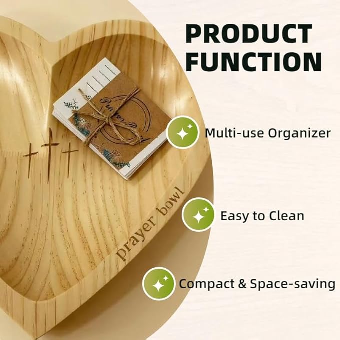 - 【All-in-One Prayer Box & Card Holder】– This set provides a dedicated sacred space for your intentions. The generous heart shape easily accommodates prayer cards, written petitions, and gratitude notes, keeping them organized and serving as a tangible reminder of your faith and blessings.