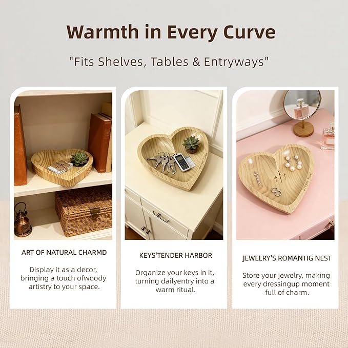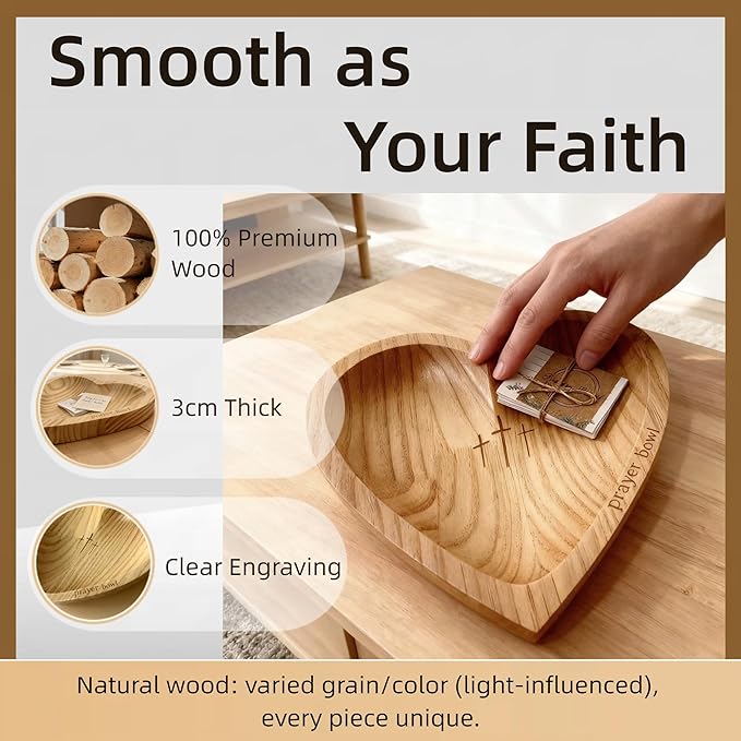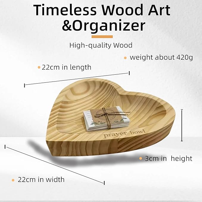 - 【Wooden Heart Prayer Bowl】– Meticulously carved from natural wood into a universal symbol of love, this bowl boasts a smooth finish and rustic charm. Its durable construction ensures it serves as a cherished keepsake for years to come, perfect as a decorative centerpiece or a functional dough bowl.
