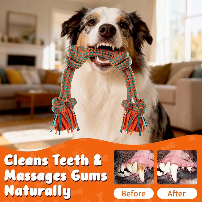 - 2025 FIRST ULTRA-FIBER ROPE TOY – Market’s first dog rope toy crafted from premium superfiber material, stronger yet softer than cotton or polyester ropes. Designed for ultimate durability and comfort, perfect for medium and large breed dogs.