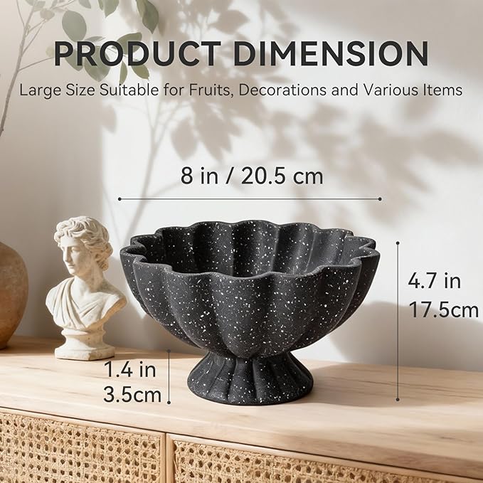 Pedestal Decorative Bowl Home Decor - Morden Resin Handmade Decorative Fruit Bowl for Kitchen Counter, Chic Ruffle Bowl Centerpiece Decor for Dining Table Coffee Table (Starry Black