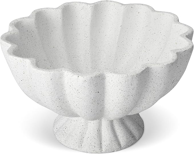 Pedestal Decorative Bowl Home Decor - Morden Resin Handmade Decorative Fruit Bowl for Kitchen Counter, Chic Ruffle Bowl Centerpiece Decor for Dining Table Coffee Table (Spotted White)