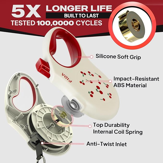 Fida Retractable Dog Leash, 16 ft Dog Walking Leash for Small Dogs up to 26 lbs, 360° Tangle Free, Cherry
