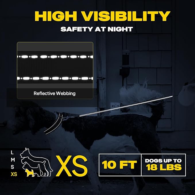 - HEAVY DUTY, DURABLE & STEADY - 10 ft high strength nylon tape with durable rustproof swivel hook and steady impact-resistant ABS material, suitable for Extra Small dogs or cats up to 18 lbs. Top durability Internal Coil Spring for Consistent Retraction several years