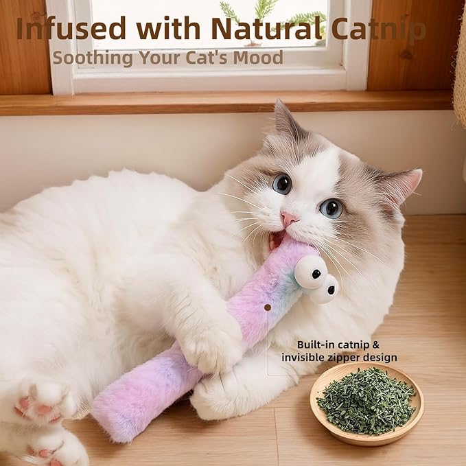 - Versatile Play Options: Ideal for solo play or interactive sessions with you, these toys encourage healthy exercise habits. Whether your cat enjoys kicking, biting, or snuggling, our catnip kick sticks cater to all types of playful behavior, making them essential for indoor fun.