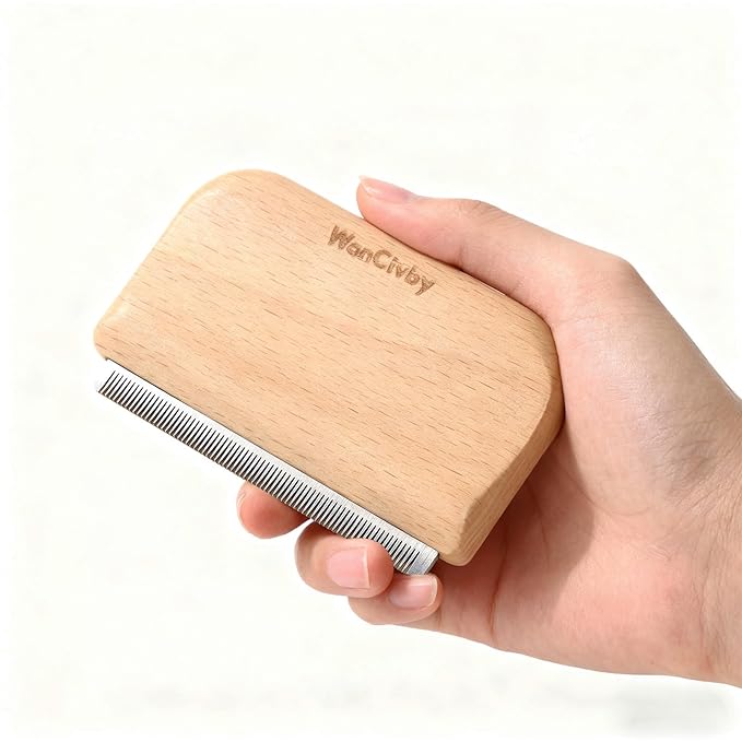 - 【Ergonomic Design】Double-sided curved ergonomic handles, provide a effortless and comfortable grip, made with a smooth wood surface painted. Perfectly fits human and pet hands/body. Stainless steel bristles are very durable and easy to clean.